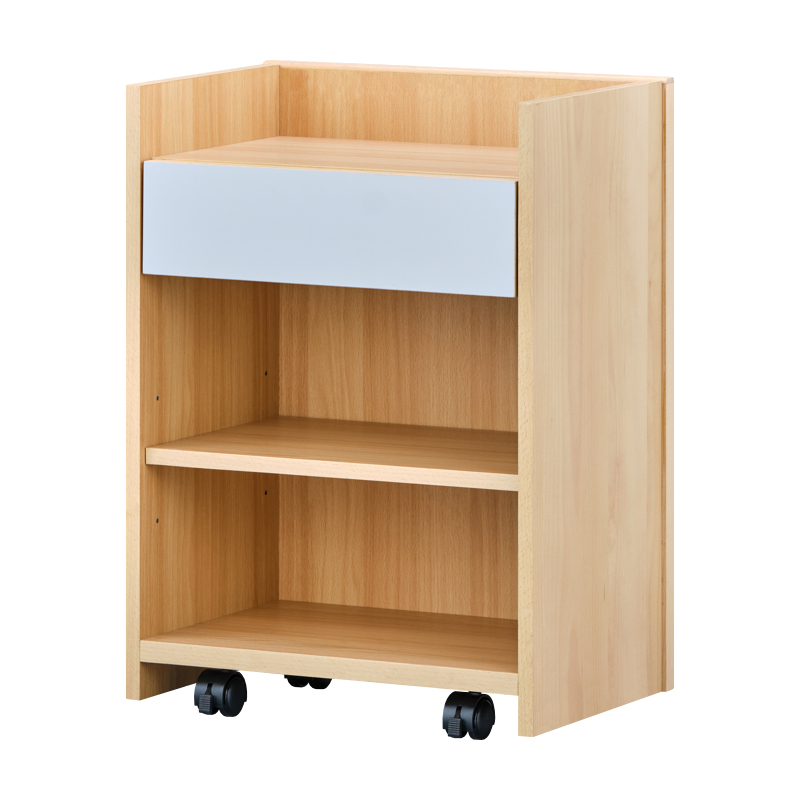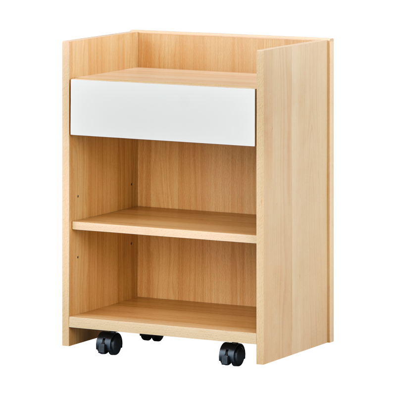 ダイニングテーブルの上に散らかりがちなものを、ひとまとめに収納したり、ダイニングテーブルで仕事をした後、サッと片付けて簡単にリセット。移動が楽々なキャスター付き。美しい背面化粧仕上げなので裏返せば見せたくない仕事道具が隠せてスッキリ。片付けはテーブルやカウンターの下に置いてもOK。